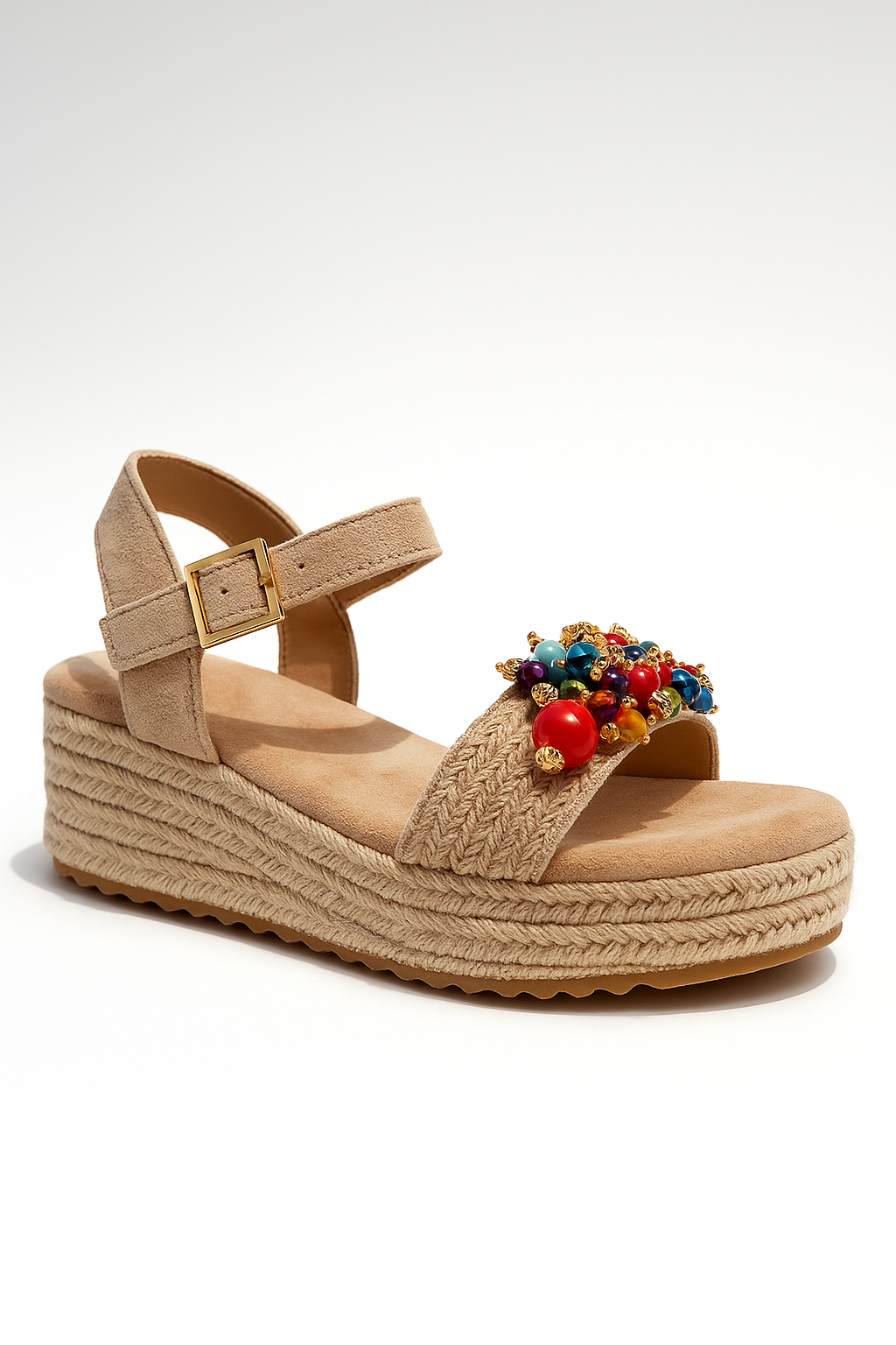 Plataforma: 5 cm (traseira) | 3 cm (frontal) – revestida em corda trançada